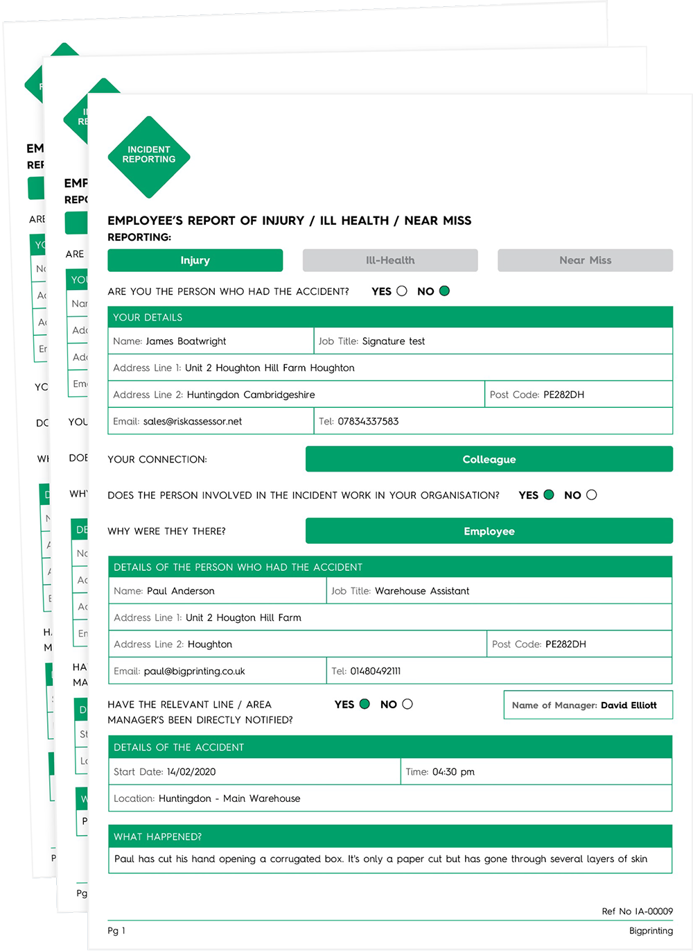 Whether you use our online safety software, or our safety App, the incident forms produced will always be in the same format. You can either try creating an incident form yourself or download a pre-existing example.
